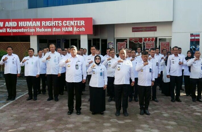 FOKUSPOST.COM | BANDA ACEH – Momentum Hari Pahlawan Ke-78 diperingati oleh Jajaran Kantor Wilayah Kemenkumham Aceh dengan menggelar upacara bersama pada Jumat (10/11/2023) pagi.