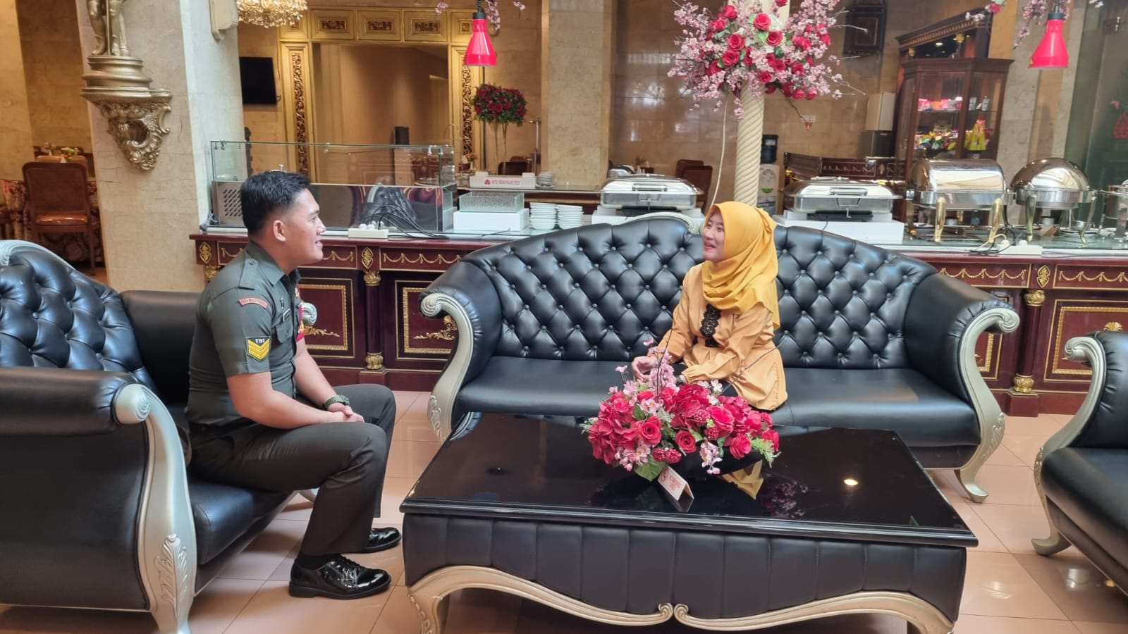 FOKUSPOST.COM | Surakarta – Babinsa Kelurahan Tipes Koramil 03/Serengan Kodim 0735 Surakarta Serka Sarmin dan Serka Anjasmoro adakan Komsos dengan Ibu Tia Selaku penanggung jawab Hotel Indah Palace Jl. Veteran No. 284 Tipes Serengan Kota Surakarta, (12/06/2023).
