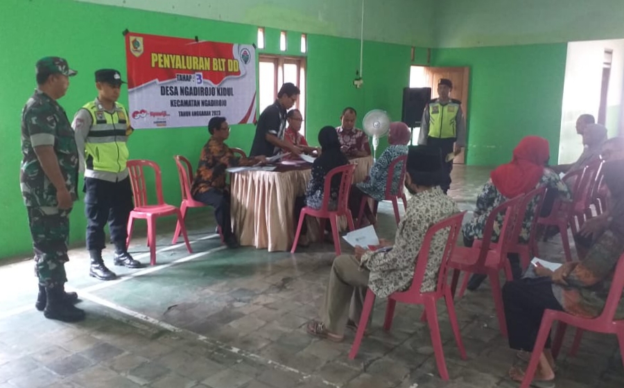 FOKUSPOST.COM | Wonogiri – Pemerintah Desa Ngadirojo Kidul melakukan kegiatan penyaluran Bantuan Langsung Tunai Dana Desa (BLT DD) Tahap III Bulan Maret Tahun 2023. Kegiatan tersebut dilaksanakan di Balai Desa dengan mendapatkan pendampingan dari Babinsa dan Bhabinkamtibmas, Jum’at(10/3/23).