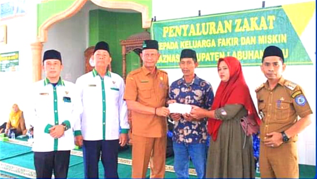 Foto : Asisten I Labuhanbatu Saat Menyerahkan Bantuan Zakat Dari BAZNAS Untuk Fakir Miskin Di Kecamatan Bilah Barat