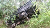 Mobil Pengangkut Barang Mitsubishi Cold Diesel Alami Kecelakaan Rem Blong Masuk Jurang