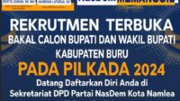 Partai NasDem Buka Pendaftaran Balon Bupati dan Balon Wakil Bupati Buru