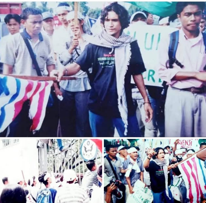 Di bawah langit Jakarta yang berat oleh awan dan kegelisahan zaman, Aziz Hentihu berdiri di tepi jalan—di depan pagar tinggi Kedutaan Besar Amerika—seakan berdiri di antara dua dunia: dunia yang diam, dan dunia yang menuntut untuk didengar.