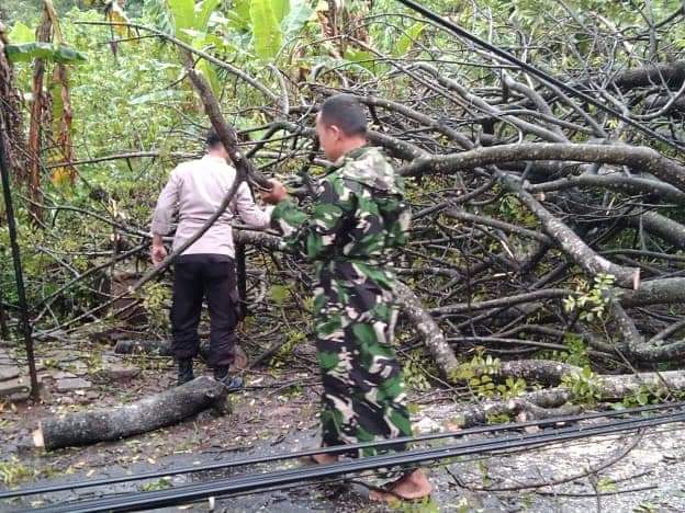 “Hari ini bersama warga, mengevakuasi pohon tumbang dan membersihkan dari badan jalan, dan untuk kejadian tidak menimbulkan korban jiwa,” ujar Babinsa