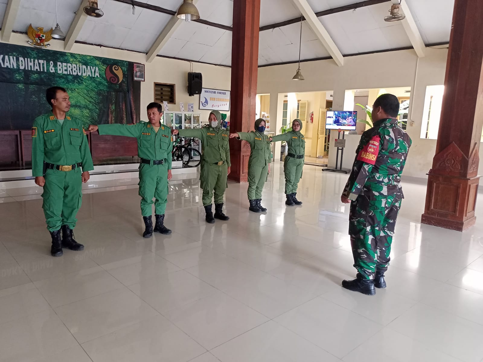 FOKUSPOST.COM | Surakarta – Bertempat di Pendopo Kelurahan Sondakan Kecamatan Laweyan, Babinsa Kelurahan Sondakan Koramil 01 Laweyan Kodim Surakarta Serka Sanyoto dan Kopda Dede Herman melaksanakan pembinaan mental, fisik dan pelatihan PBB kepada anggota linmas Kelurahan Sondakan, Senin (01/05/2023).