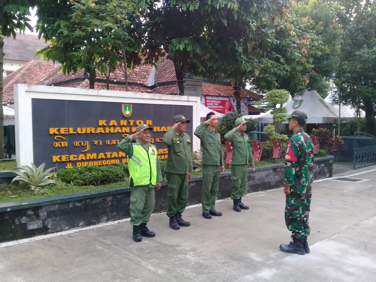 FOKUSPOST.COM | Surakarta – Babinsa Kelurahan Keprabon Koramil 02/Banjarsari Kodim 0735/Surakarta Serka Daniel K dan Serda Sugiyanto memberikan pelatihan PBB (Peraturan Baris – Berbaris) dan Wasbang (wawasan kebangsaan) kepada anggota Linmas bertempat di halaman kantor Kelurahan Keprabon jln. Diponegoro no.50 kecamatan Banjarsari, Sabtu (25/04/2023).