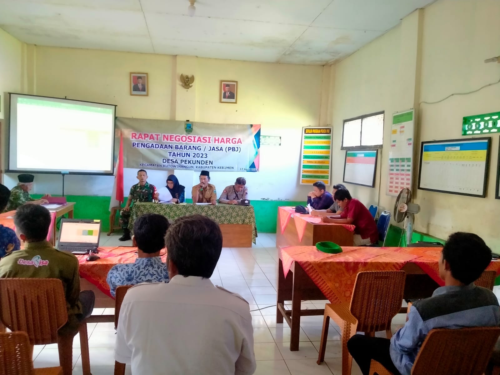 FOKUSPOST.COM | KEBUMEN – Babinsa Koramil 09/Kutowinangun Sertu Wahyu hadir pada acara pengadaan barang dan jasa pembagunan jalan (Telford Jalan) Desa Pekunden TA 2023 bertempat di Aula Balai Desa Pekunden Kecamatan Kutowinangun Kabupaten Kebumen. Senin (17/04/23).