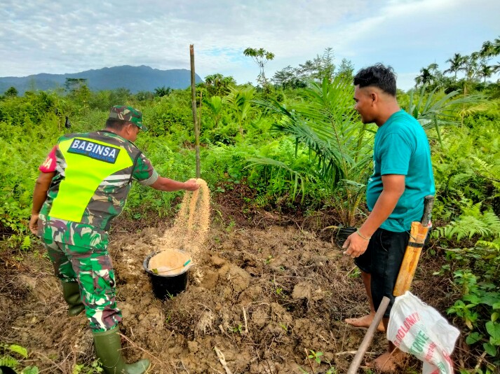FOKUSPOST.COM | Aceh Timur – Dalam upaya meningkatkan kesejahteraan masyarakat, Serda Supardi, Babinsa Koramil 10 Simpang Jernih, Kodim 0104/Atim, terus berjibaku bersama warganya. Kali ini, Babinsa melaksanakan pendampingan di bidang pertanian dengan mengunjungi Saudara Karim untuk memberikan bantuan melakukan tindakan pemberian pupuk Dolomit. Sabtu (25-11-2023) Desa Batu Sumbang, Kecamatan Simpang Jernih, Aceh Timur.