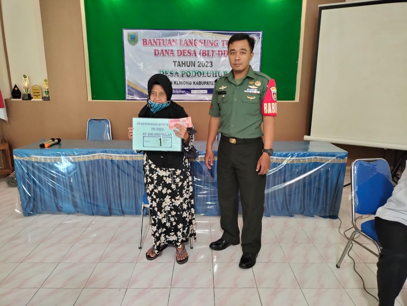 Dalam kesempatan tersebut turut hadir Kades Podoluhur Asrodin beserta Perdes, Babinsa Koramil 15/Klirong Koptu Alif Yulianto, Pendamping Desa serta Penerima BLT DD sejumlah 36 orang.