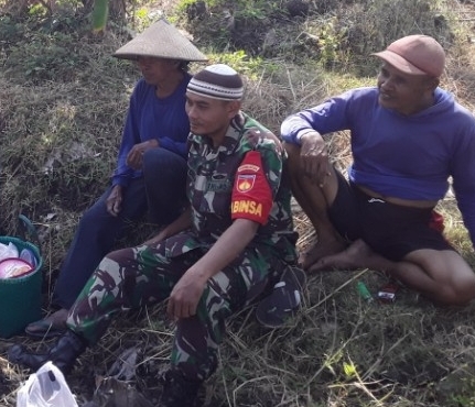 Dalam menjalin komunikasi sosial antara aparat komando kewilayahan dengan masyarakat bisa dilakukan di mana saja. Seperti yang dilakukan Serka Kuat dengan melakukan komsos bersama para petani yang siap turun kesawah di areal persawahan milik Pak Slamet ( 45 ).