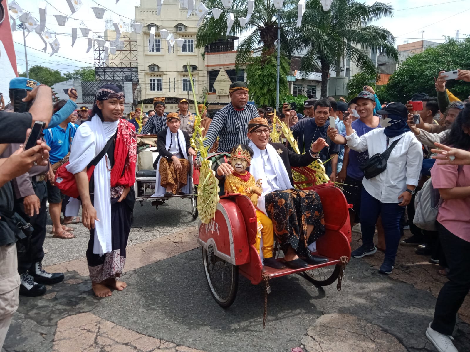 Pada kesempatan tersebut, Menparekraf Sandiaga turut ikut kirab Solo Menari 2023 bersama Walikota Solo Gibran Rakabuming Raka, di sepanjang Jl Jenderal Sudirman menuju Balai Kota dan pasar gede Surakarta.