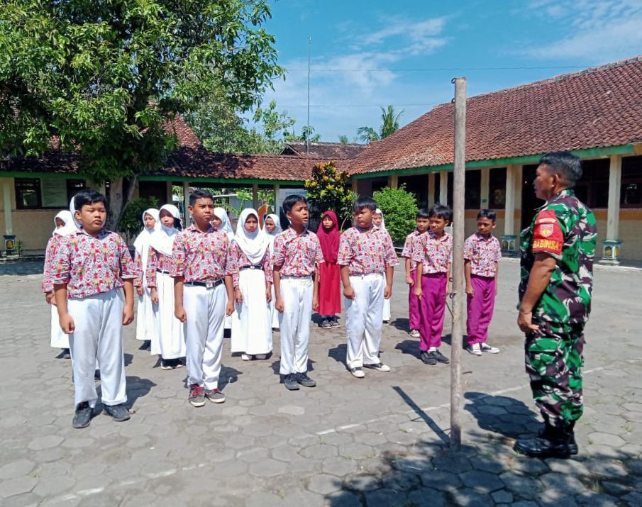 FOKUSPOST.COM |Wonogiri – Babinsa Desa Sumberejo, Koramil 10/Wuryantoro, Serka Ali Imran memberikan pelatihan Peraturan Baris Berbaris (PBB) kepada siswa-siswi SD Negeri 1 Desa Sumberejo, Kecamatan Wuryantoro, Kamis(11/5/23).