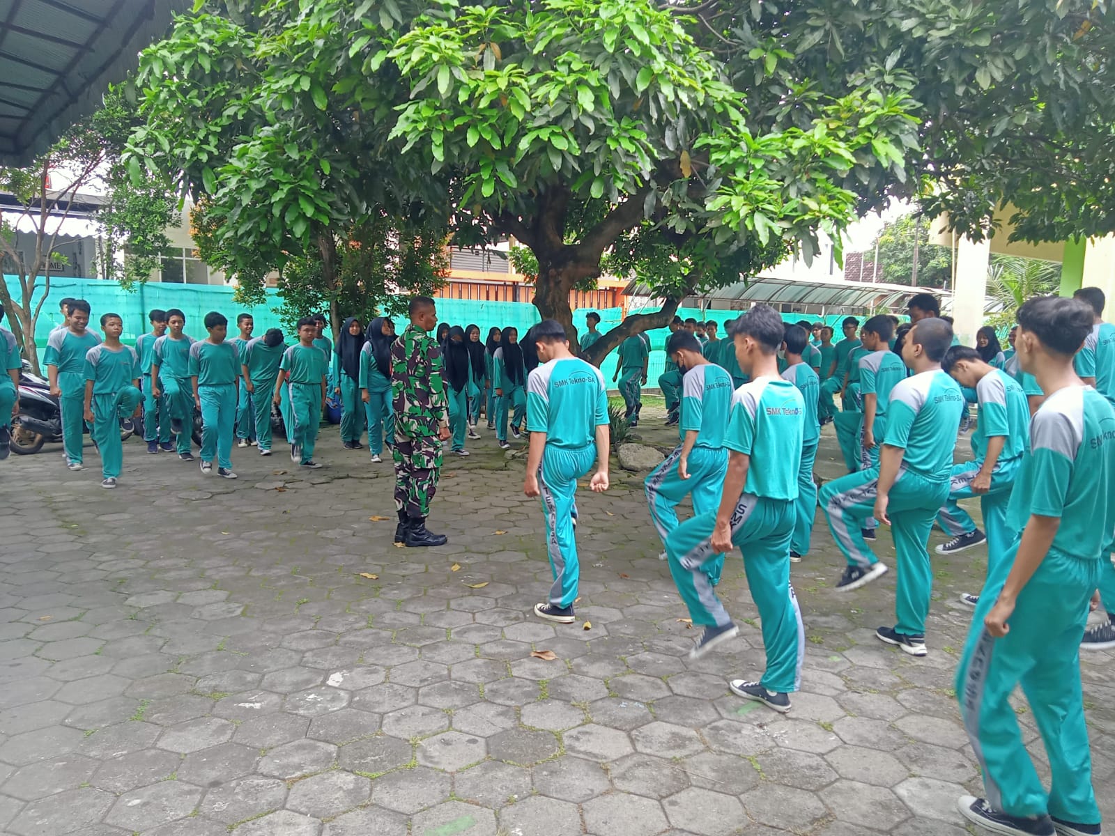 FOKUSPOST.COM | Surakarta – Dalam rangka membentuk sikap ,kedisplinan, kekompakan, loyalitas dan kepedulian serta rasa persatuan dan rasa tanggung jawab sejak dini, Babinsa Kelurahan Sumber Koramil 02/Banjarsari Kodim 0735/Surakarta, Serka Danang dan Sertu Yusuf Arimatea memberikan pelatihan dasar Peraturan Baris Berbaris (PBB) di SMK TEKNOSA Jl.Pakel kelurahan Sumber, Kecamatan Banjarsari, yang diikuti 153 orang pelajar, Jum’at (17/03/2023).