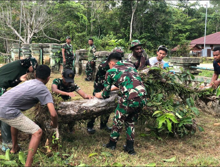 FOKUSPOST.COM | Boven Digoel ~ Satgas Pamtas Statis RI-PNG Yonif 111/KB yang bertugas diwilayah Perbatasan Sektor Kolakops Korem 174/Anim Ti Waninggap, melaksanakan Kegiatan Karya Bakti bersama Instansi Kesehatan setempat dengan sasaran faselitas umum dan Instansi Pemerintahan sebagai wujud kepedulian serta bentuk kemanunggalan TNI dan Rakyat menjelang Natal dan Tahun Baru, Sabtu 09/12/2023