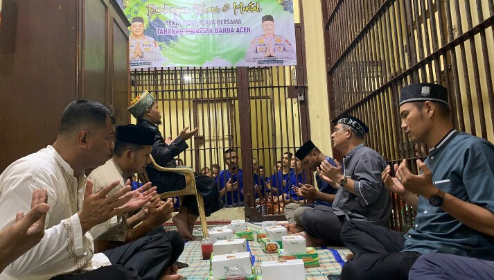 FOKUSPOST.COM | ACEH – Dalam rangka meningkatkan penguatan mental dan iman di bulan puasa, Sat Tahti Polresta Banda Aceh membagikan takjil dan buka puasa bersama sebagai bentuk kepedulian terhadap tahanan di dalam rutan setempat.