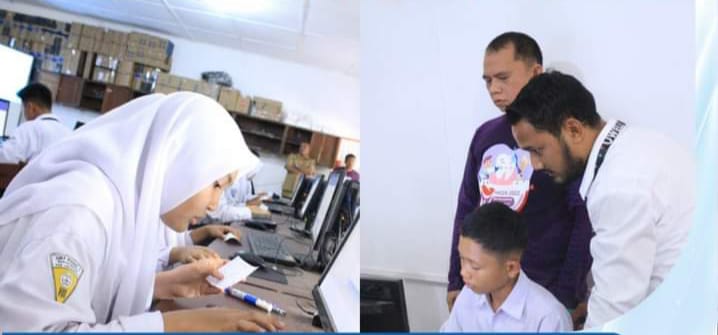 FOKUSPOST.COM | LABUHANBATU – Bupati Labuhanbatu dr.H.Erik Adtrada Ritonga, MKM bersama Pelaksana Tugas Kepala Dinas Pendidikan Asrol Azis Lubis,SE.M.AP lakukan monitoring terhadap kesiapan sekolah dalam menghadapi ANBK tahun 2022, di SMP Negeri 1 Rantau Selatan. Senin (12/09/2022), Kabupaten Labuhanbatu, Sumatera Utara.