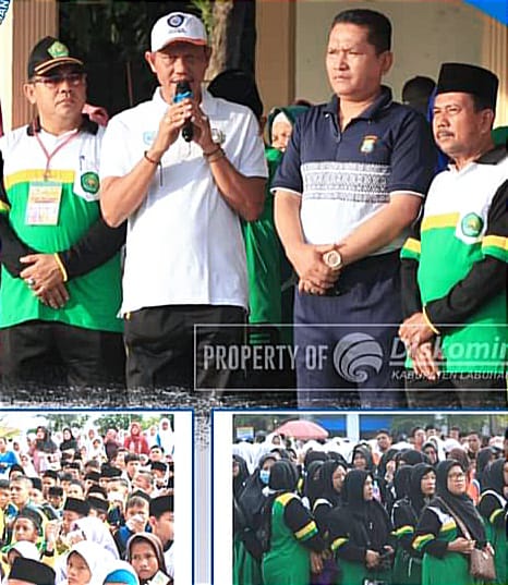 Pada kesempatan yang sama, Kepala Kantor Kemenag Kabupaten Labuhanbatu Dr. H. Asbin Pasaribu, MA., mengatakan bahea gerak jalan ini juga serentak dilaksanakan di seluruh Indonesia, dan di Labuhanbatu estimasi 3000 lebih peserta.