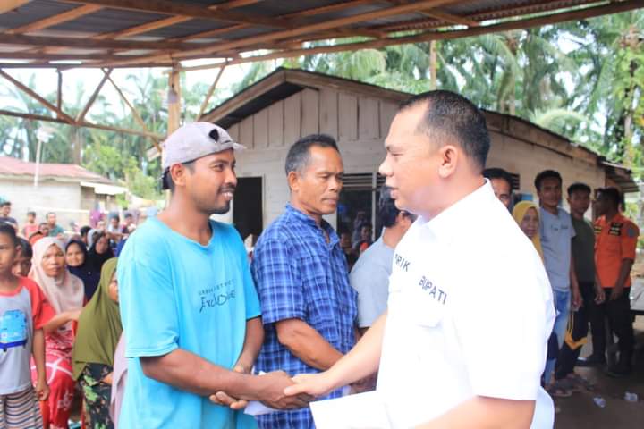 FOKUSPOAT.COM | LABUHANBATU – Bupati Labuhanbatu dr. H. Erik Adtrada Ritonga, MKM meninjau/ mengunjungi para korban angin puting beliung di Desa Sibargot, Kecamatan Bilah Barat. Rabu (14/09/2022), Kabupaten Labuhanbatu, Sumatera Utara.