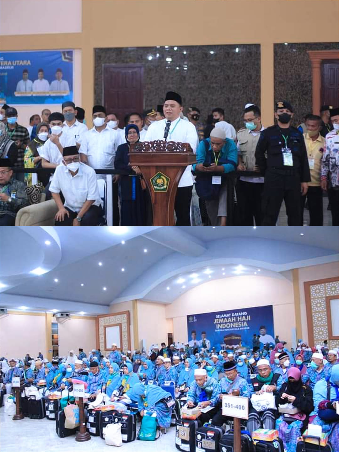“Khususnya untuk Kabupaten Labuhanbatu, dahulu diantar oleh bapak Bupati, sekarang di jemput juga oleh Bupati dan lebih utama lagi hari ini bapak Wakil Menteri Agama juga hadir untuk menyambut bapak dan ibu sekalian,”Ucapnya.