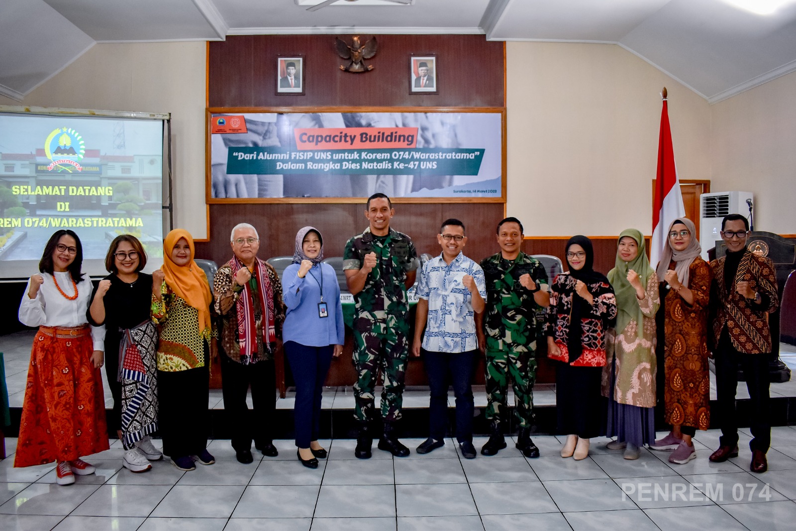 FOKUSPOST.COM | Surakarta – Alumni FISIP UNS mengadakan Capacity Building untuk Korem 074/Warastratama dalam rangka Dies Natalis ke 47 UNS. Kegiatan yang dibuka langsung oleh Komandan Korem 074/Warastratama Kolonel Inf Anan Nurakhman, S.I.P., ini dihadiri oleh Rektor UNS Prof. Dr. H. Jamal Wiwoho, S.H., M. Hum., Ketua Keluarga Alumni FISIP UNS Drs. Pandapotan Rambe, M.Si., Kepala Staf Korem Letkol Inf Agus Adhy Darmawan, S.I.P., M. I. Pol., para Komandan Kodim dan 200 Prajurit Korem 074/Warastratama beserta Kodim jajaran, Selasa (14/03/2023).