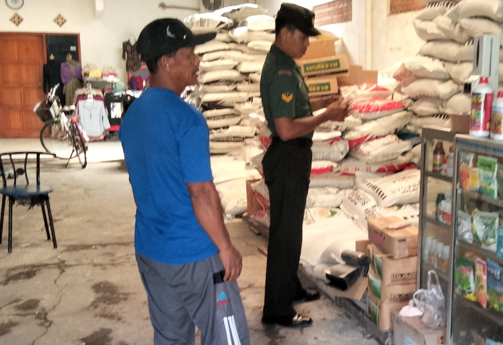 FOKUSPOST.COM | Sragen – memastikan ketersediaan pupuk bersubsidi aman, Babinsa Desa Girimargo Koramil 16/Miri Kodim 0725/Sragen Sertu Adi melaksanakan pengecekan pupuk bersubsidi di kios milik Bp Kusno. Jum’at ( 24/03/2023 ).
