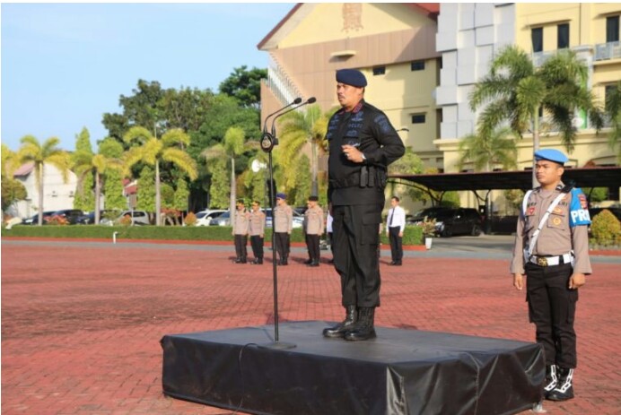 FOKUSPOST.COM | Banda Aceh – Dansat Brimob Polda Aceh Kombes Pol Selamat Topan, S.I.K. M.Si, memimpin apel pagi di Mapolda Aceh, Senin (27/03/2023).