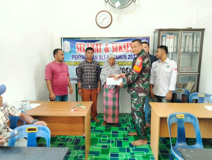 FOKUSPOST.COM |Aceh Timur – Bertempat di kantor Geuchik Beuri Kecamatan Peureulak Barat, Aceh Timur, Peltu Darno Babinsa Koramil 15/Plkb Kodim 0104/Atim mendampingi penyaluran Bantuan Langsung Tunai Dana Desa (BLT DD) tahun 2023, Kamis (20/04/2023).