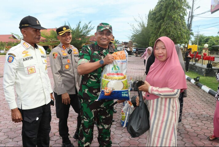 FOKUSPOST.COM | Aceh Timur – Komandan Kodim 0104/Aceh Timur Letkol Inf Tri Purwanto, S.I.P. menghadiri pagelaran Pasar Murah yang digelar Polres Aceh Timur, yang bekerjasama Pemerintah Kabupaten Aceh Timur dan Bulog Langsa, dalam rangka menyambut Hari Bhayangkara ke 77 yang jatuh pada 1 Juli 2023 mendatang, yang berlangsung di Lapangan Apel Sarja Arya Racana Polres Aceh Timur, Rabu, (07-06-2023).