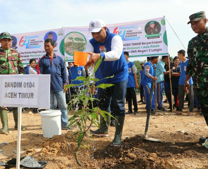 FOKUSPOST.COM | Langsa – Dandim 0104/Aceh Timur Letkol Inf Tri Purwanto, S.I.P., hadiri penanaman sejuta pohon dalam rangka Semarakan Hari Pendidikan Daerah ke 64 Tahun 2023 yang diselenggarakan oleh SMA Negeri 3 Langsa bertempat di Desa Pondok Keumuning, Kecamatan Langsa Lama, Kota Langsa, Minggu (03/09/2023).