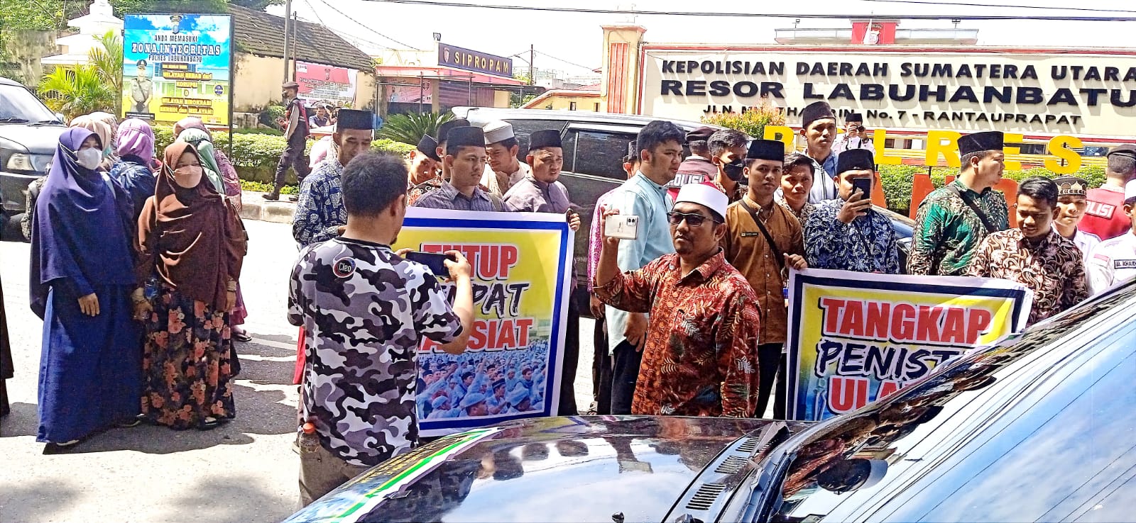 FOKUSPOST.COM | LABUHANBATU – Alumni Al- Azhar Centre Kabupaten Labuhanbatu Sumatera Utara melakukan aksi demo di depan Mapolres Labuhanbatu (29/11/2022) terkait buntut dari penistaan Gelar Akademik (LC) yang di duga / patut di pertanyakan kepada AWH di akun Facebook (FB) nya, yang membuat sontak seluruh Ulama Ulama di Labuhanbatu yang tamatan dari Cairo (Mesir) yang bertitel LC geram dengan unggahan yang di tulis oleh oknum AWH.