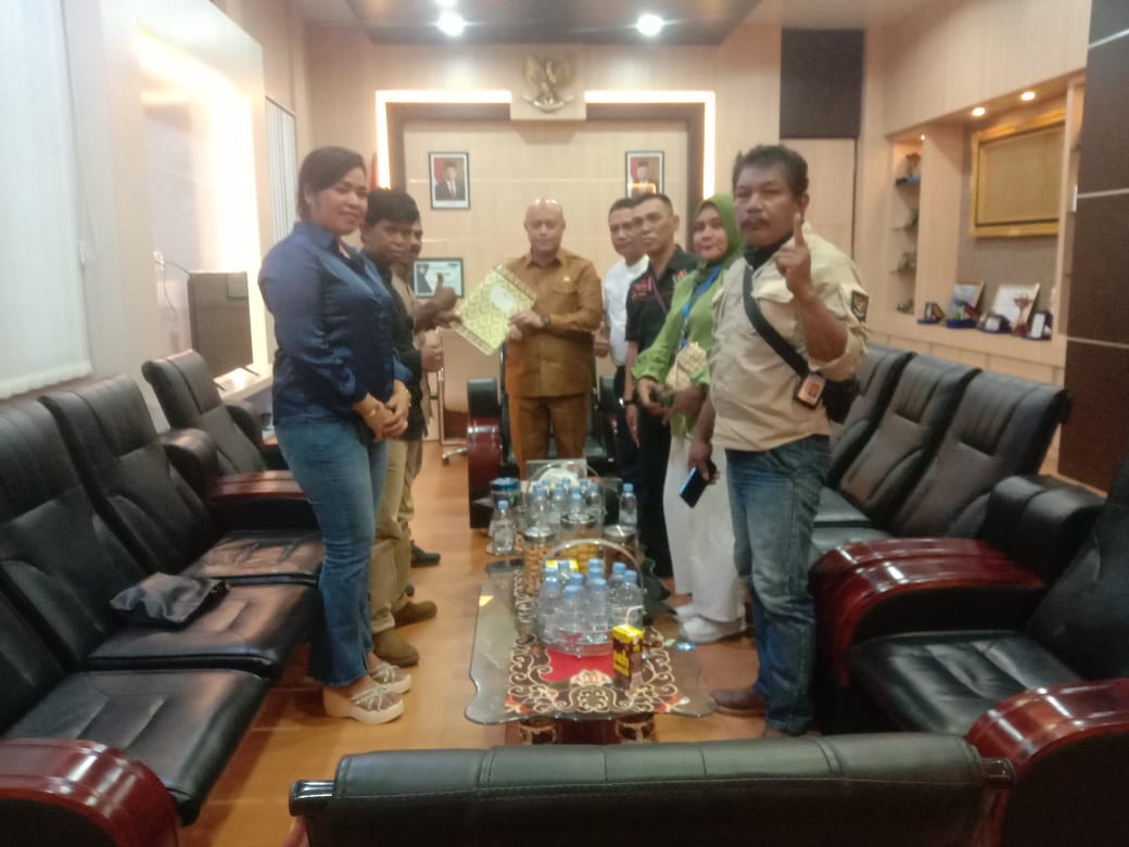 Penjabat Bupati Buru, Dr. Djalaluddin Salampessy MSi, terlihat menyambut kehadiran DPD PW MOI Kabupaten Buru dengan Suasana yang humanis saat Aliansi PERS tersebut memasuki ruangannya.