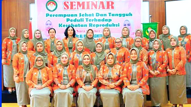 Dharmawanita Kabupaten Labuhanbatu yang di pimpim Ny. Devi Hasan Heri Rambe menggelar seminar perempuan sehat dan tangguh peduli terhadap kesehatan wanita untuk meningkatkan kualitas kesehatan wanita di Aula Kantor PKK Kabupaten Labuhanbatu, Kecamatan Rantau Utara. Rabu (13/12/2023).