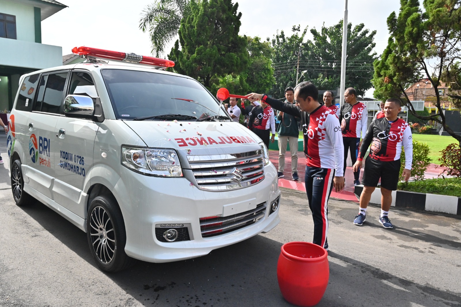 Dalam kesempat tersebut juga dilaksanakan penyerahan 1 unit ambulance CSR dari BRI oleh bapak Dodie Hartono (Pimpinan Kantor Cabang BRI Sukoharjo) kepada Dandim 0726/Sukoharjo Letkol Czi Slamet Riyadi, S.E.