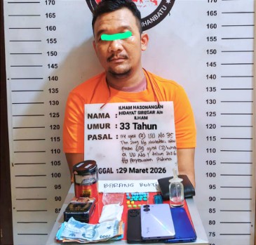 Seorang pria berinisial IH alias Ilham (33), warga Rantau Selatan, tak berkutik saat diringkus petugas di tempat hiburan malam (THM), Minggu (29/3/2026) dini hari.