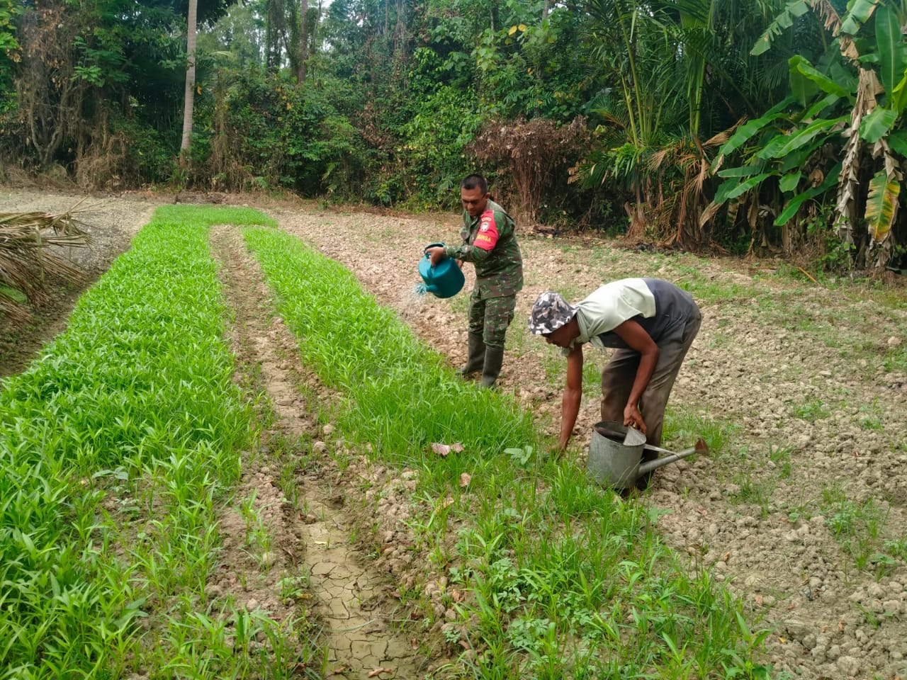 FOKUSPOST.COM | Aceh Timur – Koptu Dali Suhaeli Babinsa Koramil 21/Madat Kodim 0104/Aceh Timur melakukan pendampingan dalam perawatan kebun sayuran milik Muhammad di Desa Paya Demam, Kecamatan Madat, Aceh Timur, Jum’at (24/03/2023).