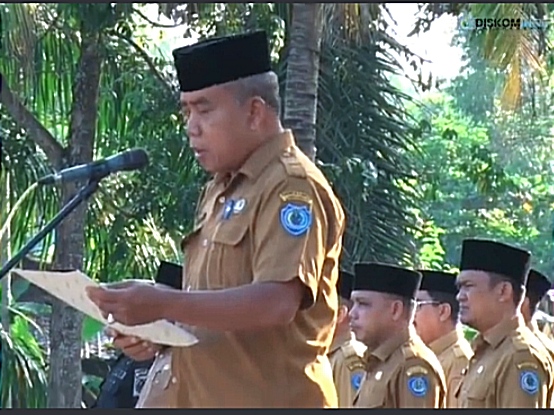 Ket gambar : Ir.Jumingan saat pimpin upacara apel pagi Pemkab Labuhanbatu