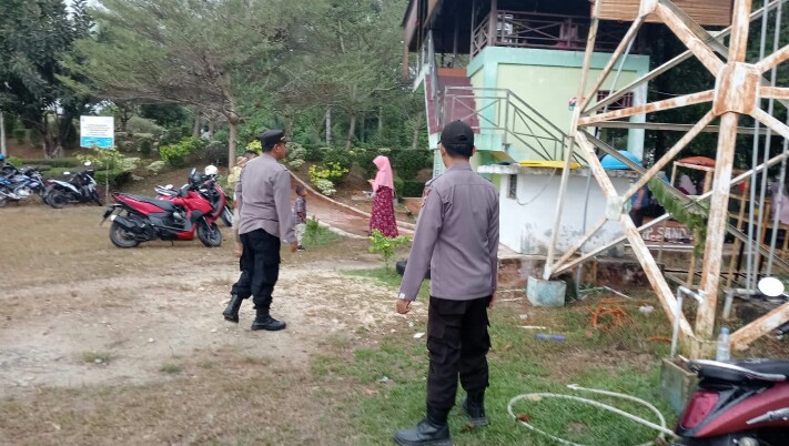 FOKUSPOST.COM | Langsa – melakukan patroli di objek wisata Hutan Kota Langsa yang ramai dipadati pengunjung saat libur lebaran Idul Fitri 1444 Hijriah, Senin (24/4/2023).