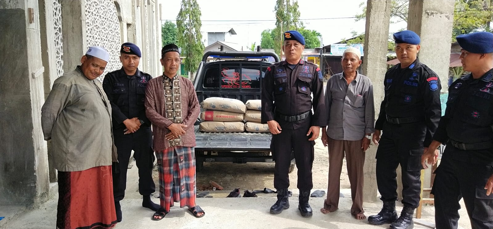 Pak Zulfikar beserta Anggotanya Memimpin Langsung Kegiatan Penyerahan Bahan Material berupa Semen Yang diterima Langsung Oleh Panitia Pembangunan Masjid.