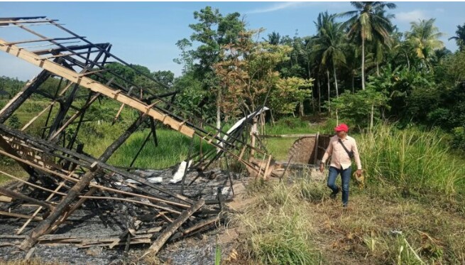 FOKUSPOST.COM | Lhokseumawe (Aceh) – Kandang lembu Badan Usaha Milik Gampong (BUMG) Keumang Barona, Desa Tanjong Keumala, Kecamatan Sawang, Kabupaten Aceh Utara, yang wilayah hukumnya (wilkum) Polres Lhokseumawe diduga dibakar OTK, Senin (27/02/2023).