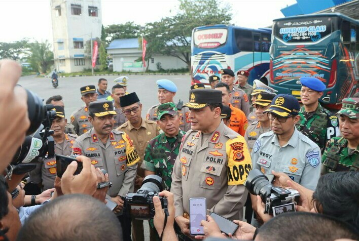 FOKUSPOST.COM | Banda Aceh – Kapolda Aceh Irjen Ahmad Haydar dan Kapolda Aceh Brigjen Syamsul Bahri beserta pejabat utama mengecek kesiapan armada mudik lebaran di Pelabuhan Ule Lheue dan Terminal Batoh, Kota Banda Aceh, Selasa, 18 April 2022.