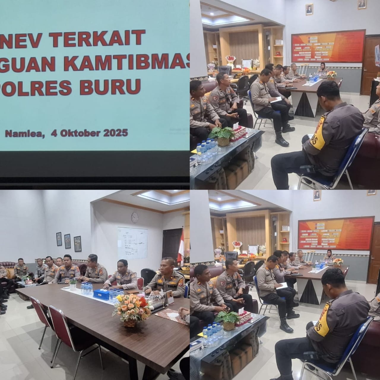 Kegiatan Anev ini dihadiri oleh Wakapolres Buru Kompol H. Akmil Djapa, para Pejabat Utama (PJU) Polres Buru, serta seluruh Kapolsek jajaran, dengan fokus pada evaluasi gangguan Kamtibmas dan perumusan strategi peningkatan kinerja serta pelayanan publik ke depan.