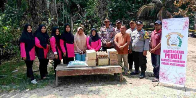 Kapolres Aceh Tamiang AKBP Muhammad Yanis, S.I.K, M.H, melalui Kapolsek Kejuruan Muda AKP Kun Hidayat, S.H, mengatakan, Pada hari Kamis, 23 Maret 2023 sekura pukul 10.00 Wib, bahwa pihaknya yang didampingi oleh Ketua Ranting Bhayangkari Kejuruan Muda Erleli melakukan kunjungan serta memberikan Bantuan Sosial (Bansos) kepada salah seorang warga yang terkena musibah rumahnya telah terbakar di Desa Suka Makmur.