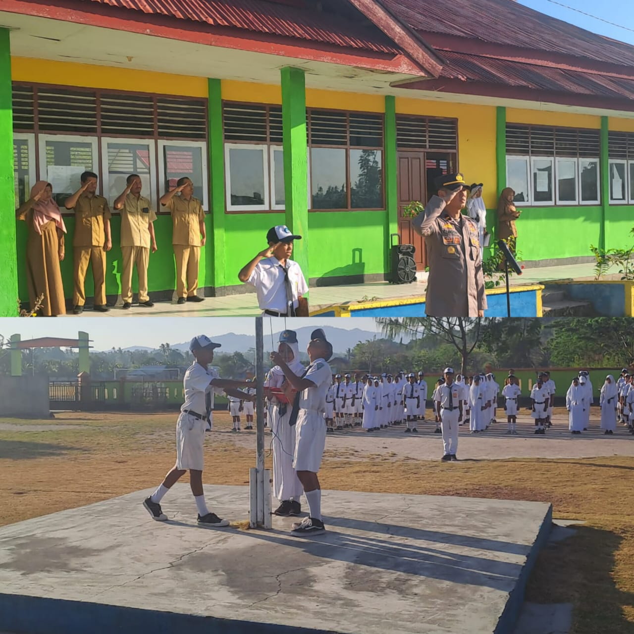 FOKUSPOST.COM | Maluku – Kapolsek Waplau, Kabupaten Buru, Ipda Charles Langitan SH, memimpin upacara pengibaran bendera merah putih di Sekolah SMP Negeri 12 Buru Desa Waplau Kecamatan Waplau, Senin, (20/11/2023)