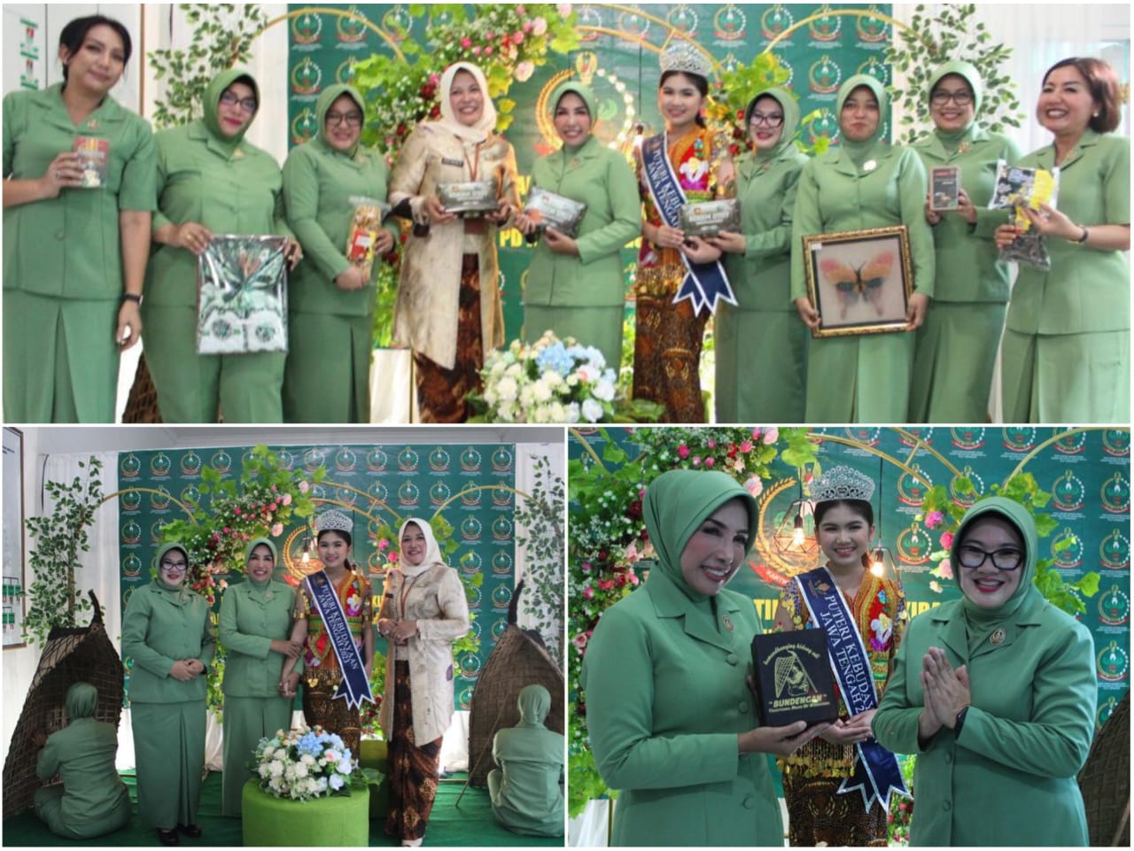 FOKUSPOST.COM | Wonosobo – Ketua Persit KCK PD IV/Diponegoro Ny. Novita Widi Prasetijono bersama rombongan meninjau stand UMKM binaan Persit Cabang Kodim 0707/Wonosobo. Pameran produk UMKM ini disajikan dalam rangka menyambut kunjungan kerja Pangdam IV/Diponegoro ke Kodim. Rombongan tersebut diterima langsung oleh Ny. Erlina Rahmat didampingi Ny. Dyah Afif ketua PKK Kabupaten Wonosobo dan Putri Kebudayaan Jawa Tengah 2023 Fairy Nabigha Rahmalina yg kebetulan putri sulung dr Dandim Letkol Inf.Rahmat .(25/5/2023)