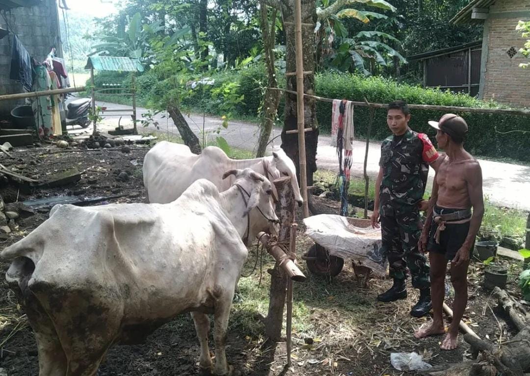 Seperti yang dilakukan oleh Babinsa Mapurujaya Serda Riyanto ia melaksanakan pendampingan kepada salah satu peternak Sapi Desa Sitibentar,Kec Mirit, Kebumen, Selasa (04/04/2023).