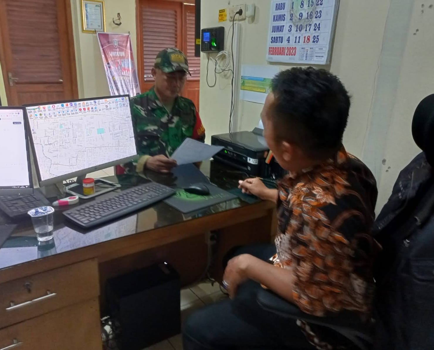 FOKUSPOST.COM | Surakarta – Babinsa Kelurahan Panularan Koramil 01/laweyan Kodim 0735/Surakarta Sertu Parso dan Serda Sutaryono melaksanakan Komunikasi Sosial (Komsos) dengan Kepala Seksi (Kasi) Pemerintahan Kelurahan Panularan bertempat di Kantor Kelurahan Panularan jln Toko Manggil no 08 Panularan kecamatan Laweyan, Kamis (09/03/2023)