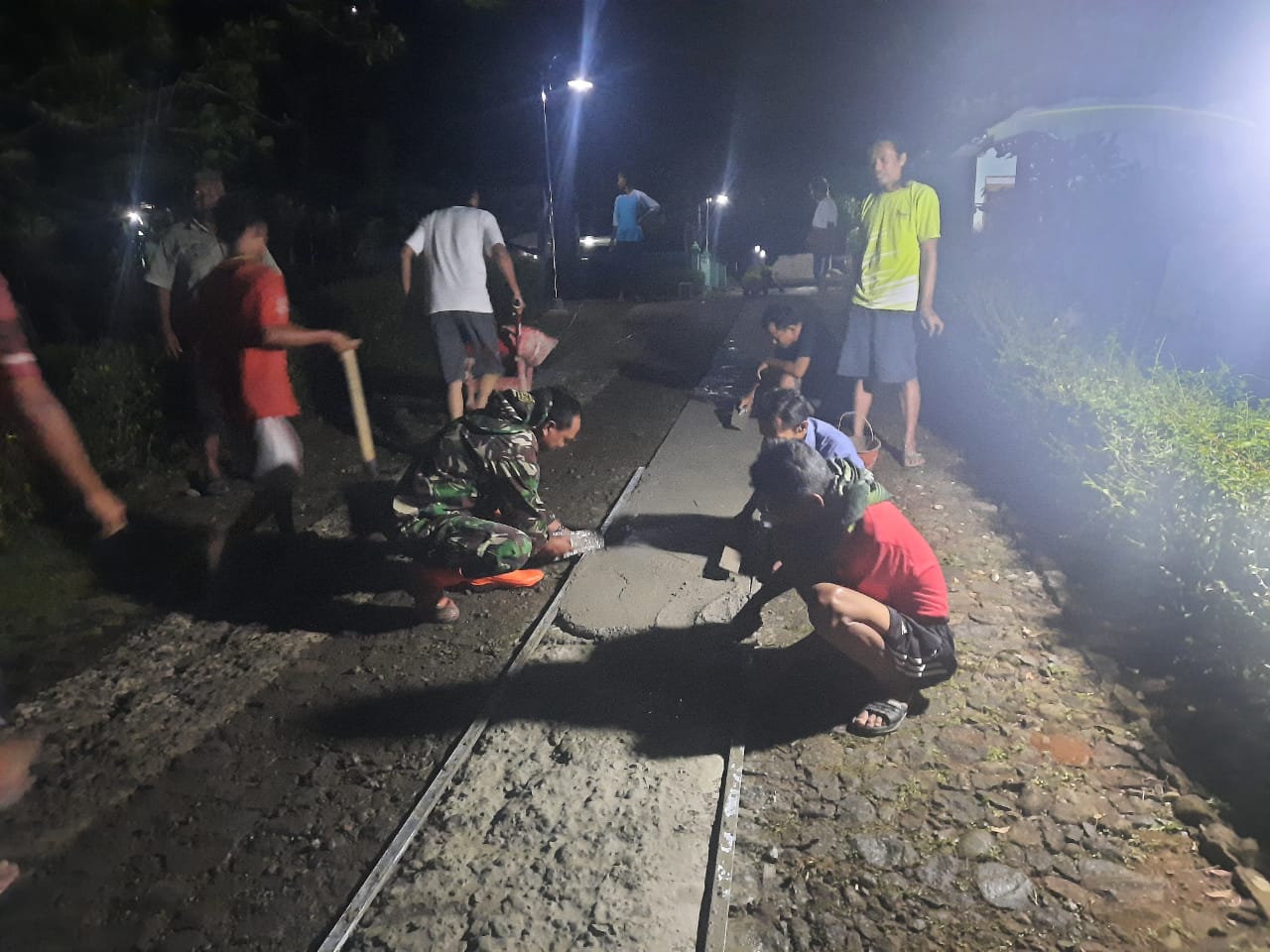 FOKUSPOST.COM |Wonogiri – Mempererat silaturahmi dan kemanunggalan yang selama ini telah terjalin, Babinsa Gondangsari Sertu Lasto dan Serda Miftahul Huda, bersama warga melaksanakan karya bakti perbaikan dan penambalan cor jalan, Minggu(11/6/23) Malam.