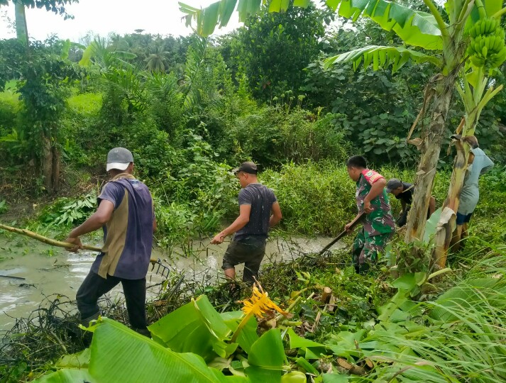 Kegiatan pembersihan parit ini melibatkan kolaborasi antara Babinsa, sebagai garda terdepan TNI di tingkat desa, dan para petani setempat. Dengan semangat gotong royong, mereka membersihkan saluran parit dari endapan lumpur dan rerumputan yang menghambat aliran air.
