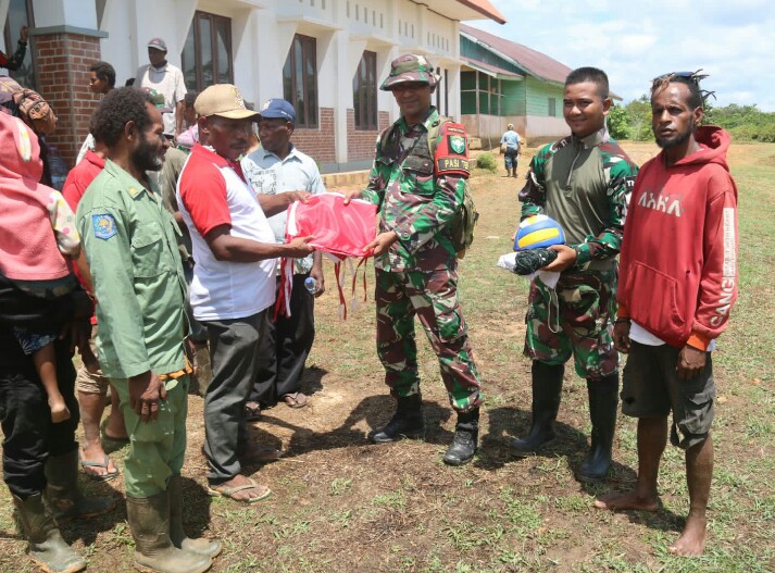 Dalam hal ini Satgas Pamtas Statis RI-PNG Yonif 111/KB memberikan dukungan Sarana Olah Raga dari Ster Mabes TNI kepada Pemuda yang ada diwilayah terpencil kab