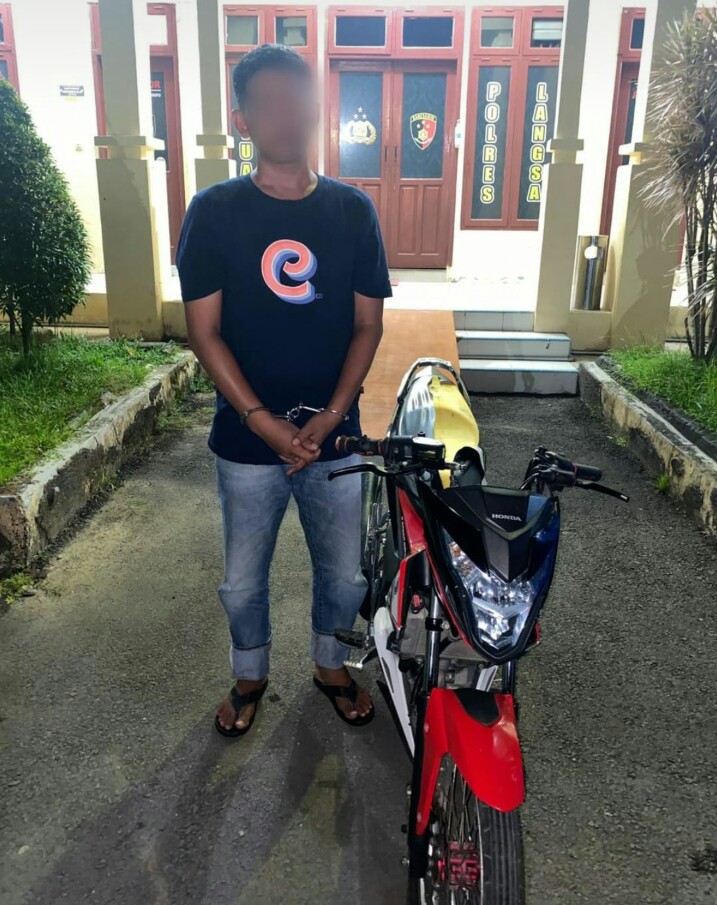 Lanjut Iptu Imam Aziz, Tersangka mengambil sepedamotor Honda Sonic warna Merah Hitam, Nopol BK 4879 RBC, Noka MH1KB1118KK191264, Nosin : KB11E1191188 milik mantan istri tersangka dari SMKN 4 Langsa yang terletak di Gampong Alue Dua, Kecamatan Langsa Baro dengan cara mendorong sepeda motor yang saat itu dalam keadaan tidak dikunci stang,